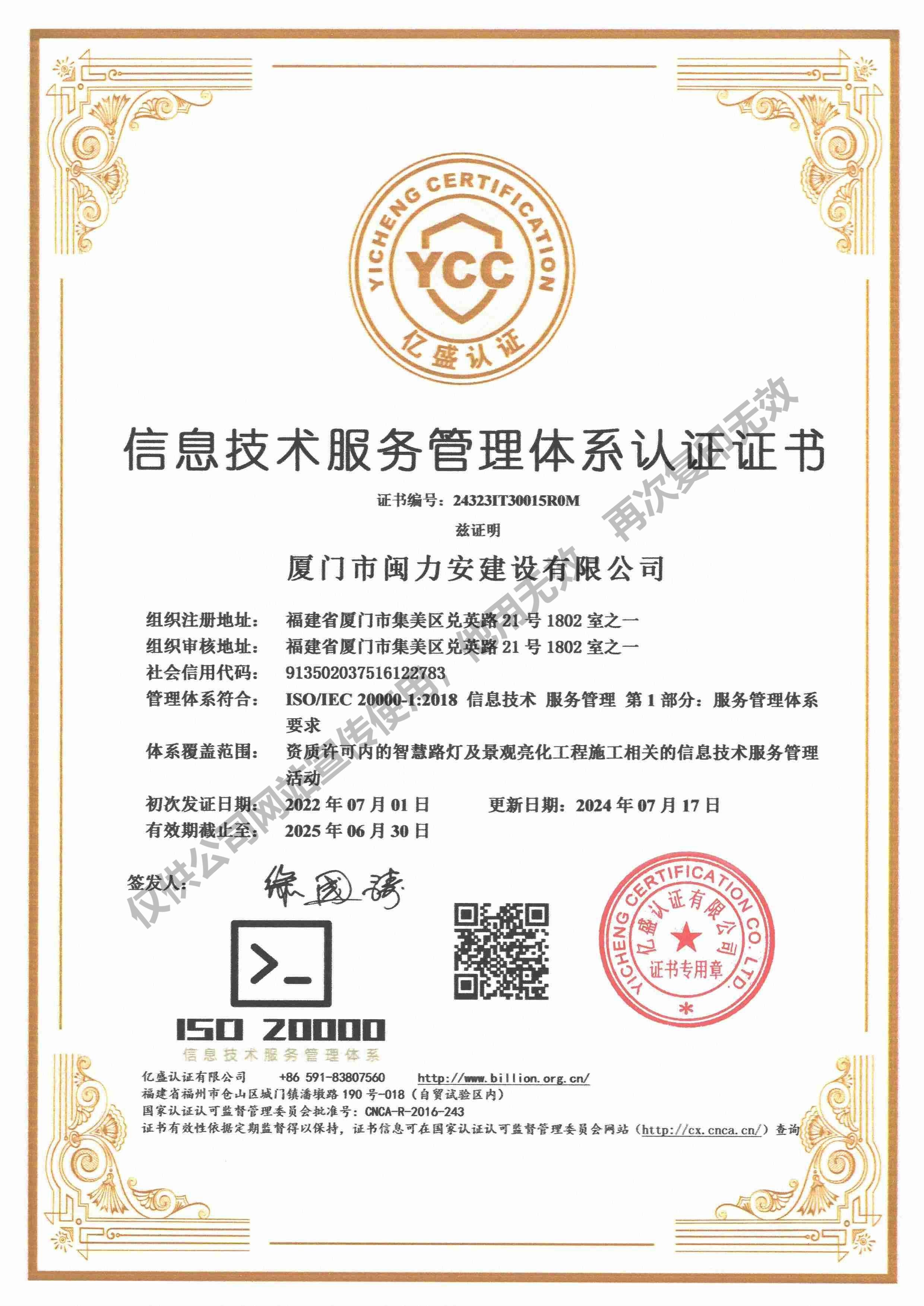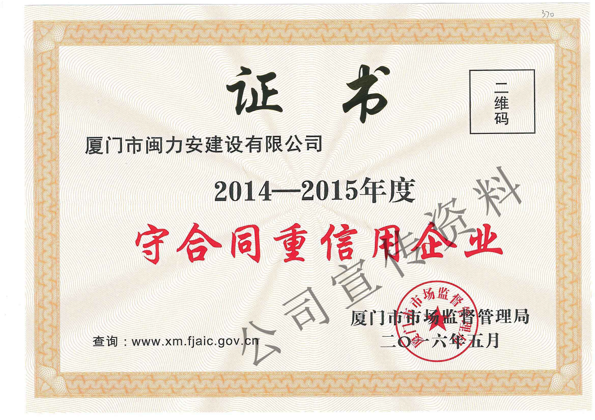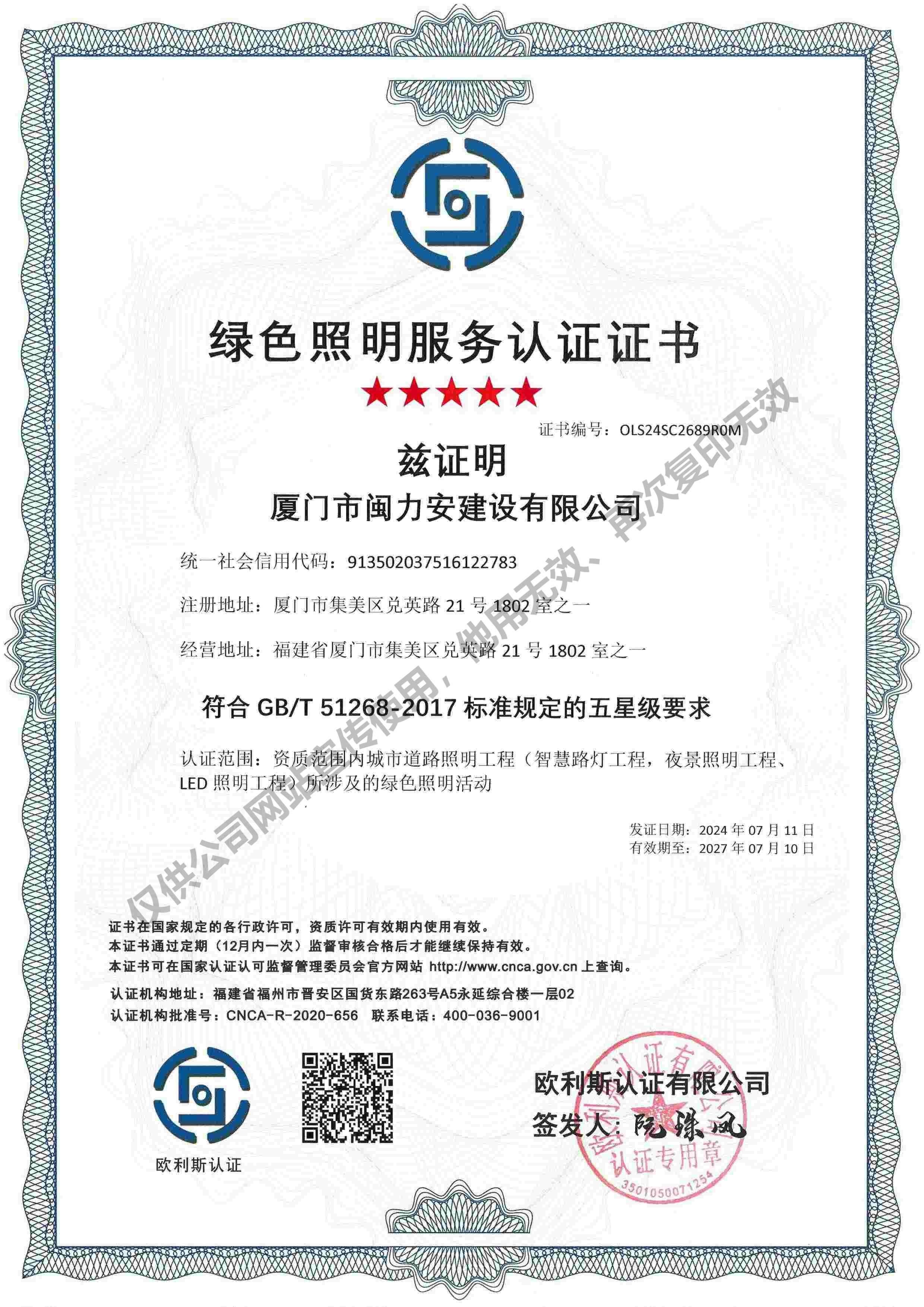 廈門市閩力安建設(shè)有限公司成立于2003年,公司取得市政公用工程施工總承包貳級、建筑裝修裝飾工程專業(yè)承包壹級、城市及道路照明工程專業(yè)承包壹級、電子與智能化工程專業(yè)承包貳級、消防設(shè)施工程專業(yè)承包貳級、電力工程施工總承包叁級、建筑機電安裝工程專業(yè)承包叁級、輸變電工程專業(yè)承包叁級、環(huán)保工程專業(yè)承包叁級、照明工程設(shè)計專項甲級、建筑裝飾工程設(shè)計乙級、施工勞務(wù)等資質(zhì)的綜合型企業(yè),公司于2013年通過了ISO9001質(zhì)量體系認(rèn)證,ISO14001環(huán)境管理體系認(rèn)證,OHSAS18001職業(yè)健康安全管理體系認(rèn)證。